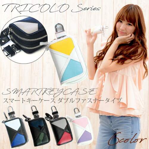 スマートキーケース ダブルファスナータイプ トリコロシリーズ(全6色) 大人気のトリコロシリーズにスマートキーケースが登場!! 車検証入れ、コインケース、6連キーケースとお揃いにしても◎ 触り心地が非常に良く、見た目の高級感が高いレザー調の素材を採用。