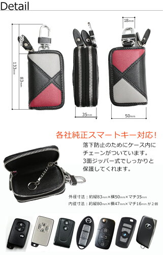 スマートキーケース トリコロシリーズ ダブルファスナータイプ (全6色)プレゼント包装無料!スマートキーカバー 箱入り プレゼントスマートキーケース キーケース スマートキー 鍵 ダブルキーケース ダブルポケット トリコロール 3色