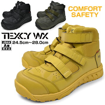 安全靴 プロスニーカー ミッドカットメンズ 安全スニーカー 通気性 蒸れない 幅広 3E EEE 軽量 防滑 耐油 先芯樹脂 JSAA規格A種 マジックテープ ベルクロ ローカット アシックス 商事 texcy WX テクシーワークス おしゃれ 軽量