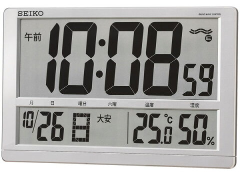 セイコー 掛け置き兼用 大型デジタル 高コントラスト液晶 電波時計 温度湿度表示 銀色メタリック SQ433S【あす楽対応】