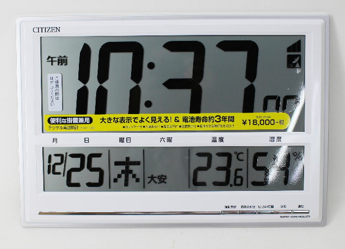 シチズン 置き掛け兼用時計 デジタル 電波時計 大型 40.7cm温度 湿度 カレンダー 六曜 シルバーメタリック 8RZ199-019 商品説明■LCDの表示を見やすい太さ、バランスにしてリニューアルしました。