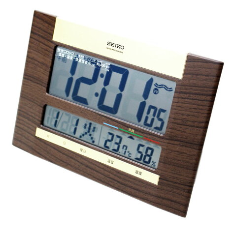 温湿度表示に加え、快適度表示が健康管理を応援●製品番号SQ440B●枠材プラスチック枠(茶木目模様)前面:ガラス●サイズ・重さ180x260x22mm 460g置いた状態174x260x81mm●電池単3(マンガン)×2(電池寿命約1年間)●機能電波修正機能(40kHz/60kHz自動選局・受信OFF機能つき)2099年までのフルオートカレンダー機能温湿度表示(温度測定範囲:0℃〜40℃ 測定精度:±2℃ 湿度測定範囲:25%RH〜85%RH 測定精度:±8%(25℃))快適度表示(6段階)12時間制/24時間制切替式置用スタンドつき●付属品保証書なし■アラーム機能は付いておりません。